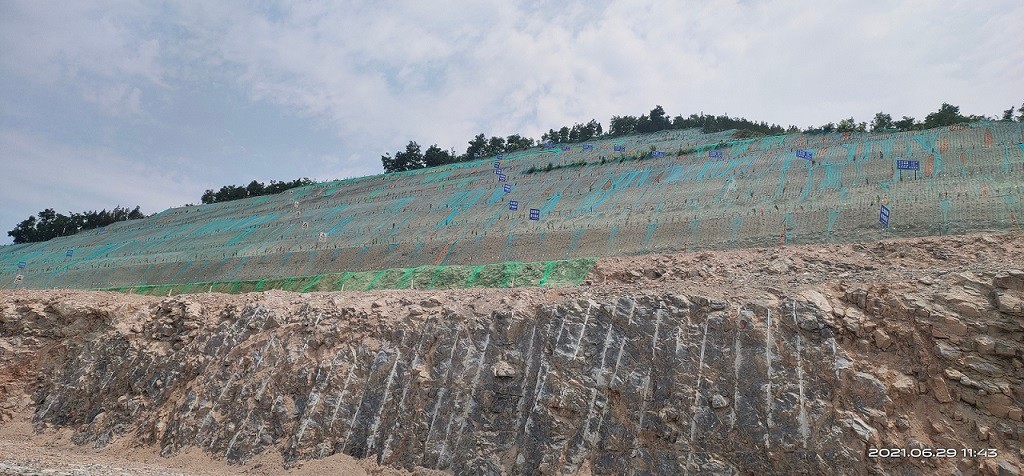 进行综合治理(包括削坡减载、边坡坡面治理、黄土清理。绿化、排水等),治理后台阶高度7m, 坡面角度为45° ,共形成848m. 841m.834m、827m、820m、 813m、 806m、 799m. 792m、 785m 共10 个平台,在采场周边共布